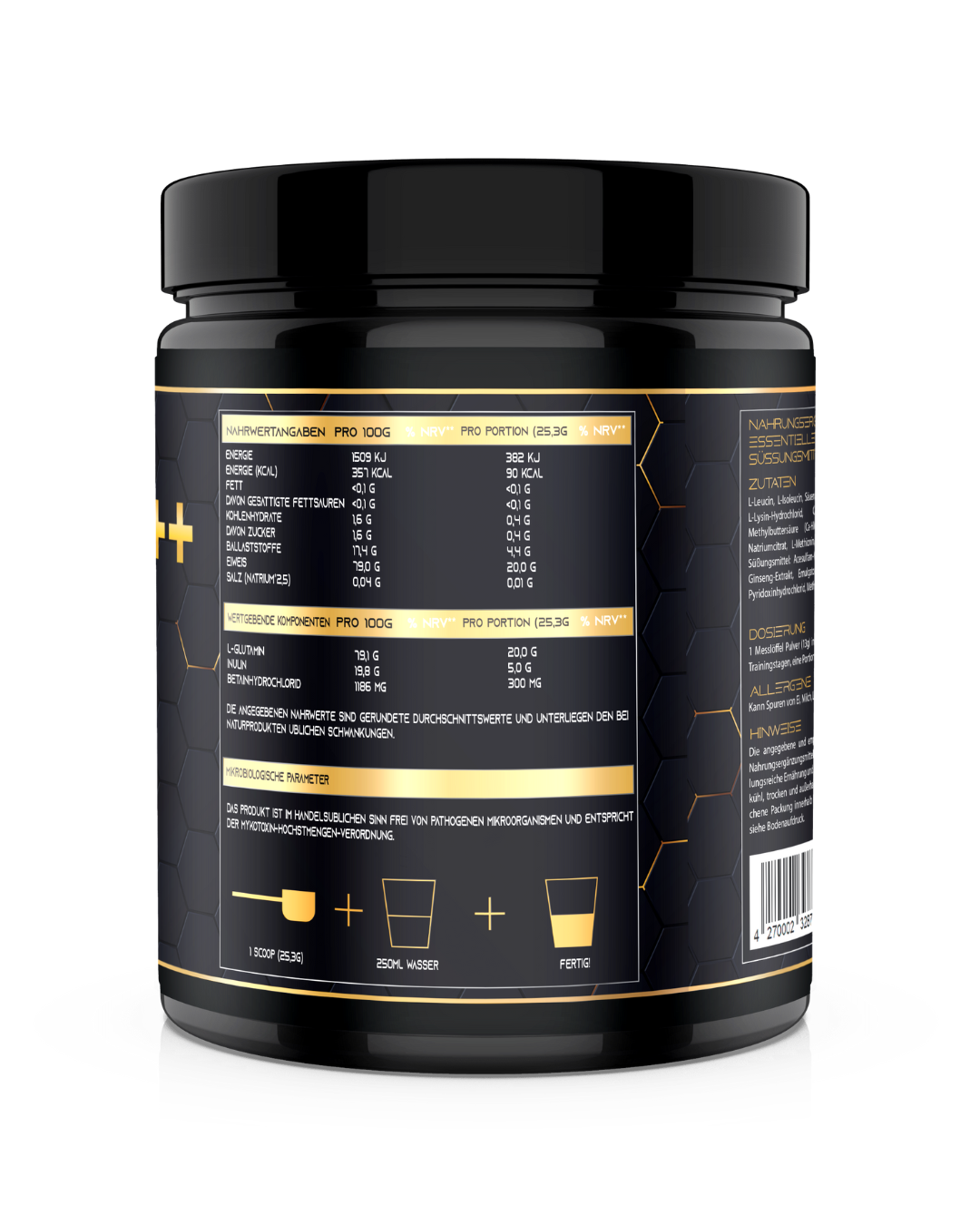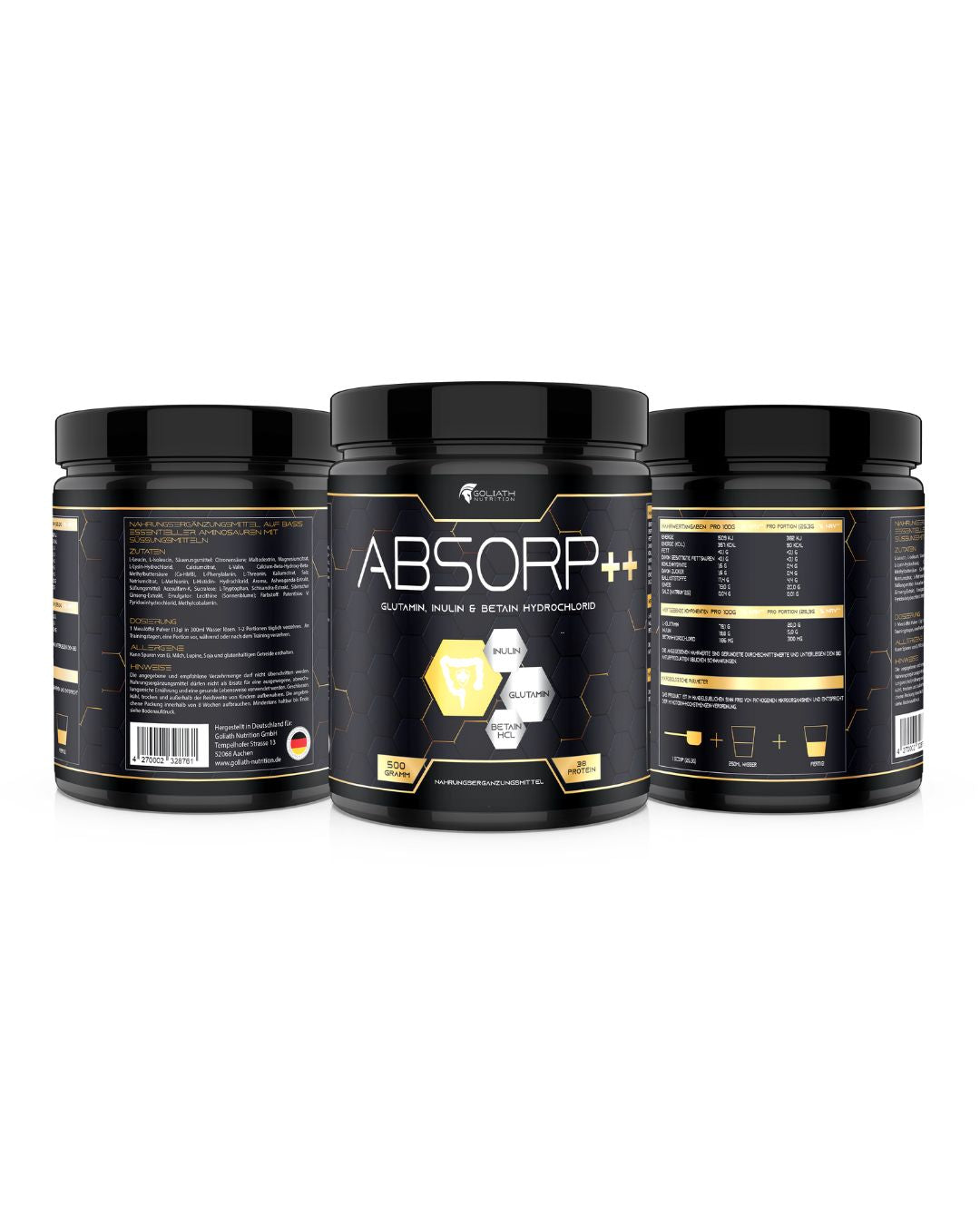 Absorb++ ist ein einzigartiges Nahrungsergänzungsmittel, welches eine Kombinationsmatrix aus Glutamin, Betain HCL und Inulin enthält. Glutamin ist eine Aminosäure, die wichtig für die Regeneration der Muskeln und des Immunsystems ist. Desweiteren fördert es die Darmgesundheit. Betain HCL hilft, die Verdauung und die Absorption von Nährstoffen zu verbessern. Inulin ist ein löslicher Ballaststoff, der das Wachstum von nützlichen Bakterien im Darm fördert und die Verdauung unterstützt.