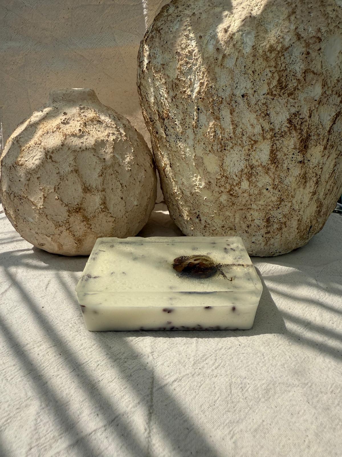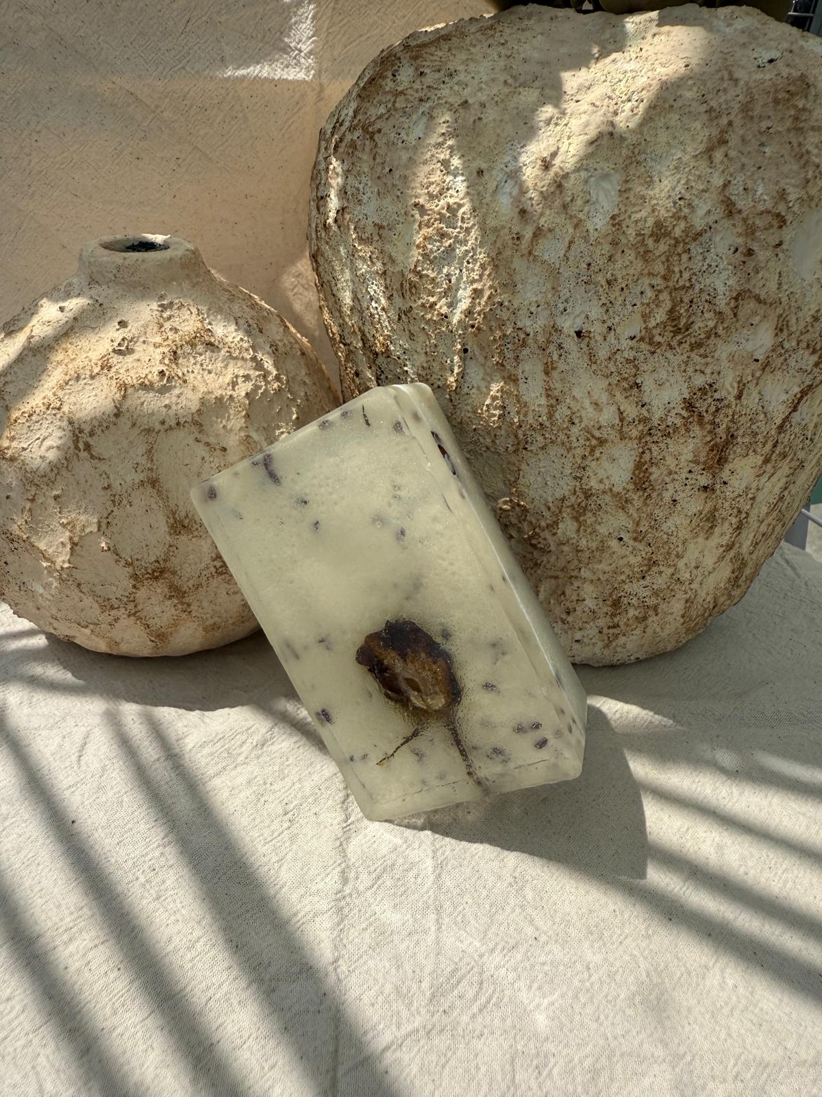 Handgemachte Naturseife mit Calendula, Leinsamen und getrocknete Rose.